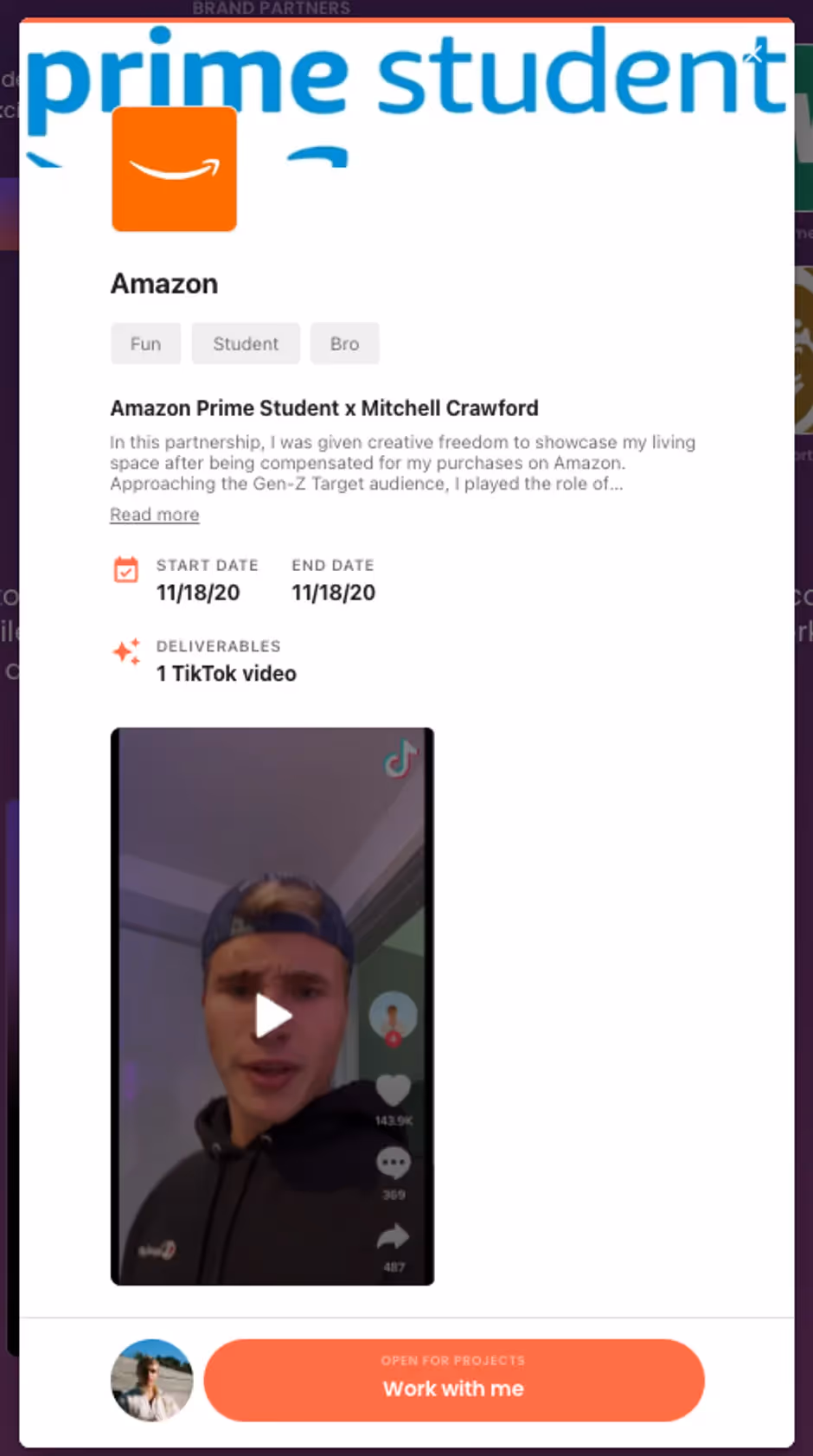 If a brand is viewing a Beacons media kit from a prospective creator partner, they’ll be able to see the creator’s past partnerships linked in one place and learn more about exactly what the creator delivered for each.