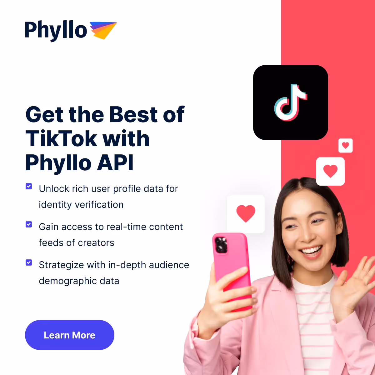 Phyllo’s robust data aggregation capabilities allow you to seamlessly gather comment data from various TikTok videos, providing a comprehensive view of user interactions. This simplifies the data collection process and enhances your ability to analyze trends and sentiment.