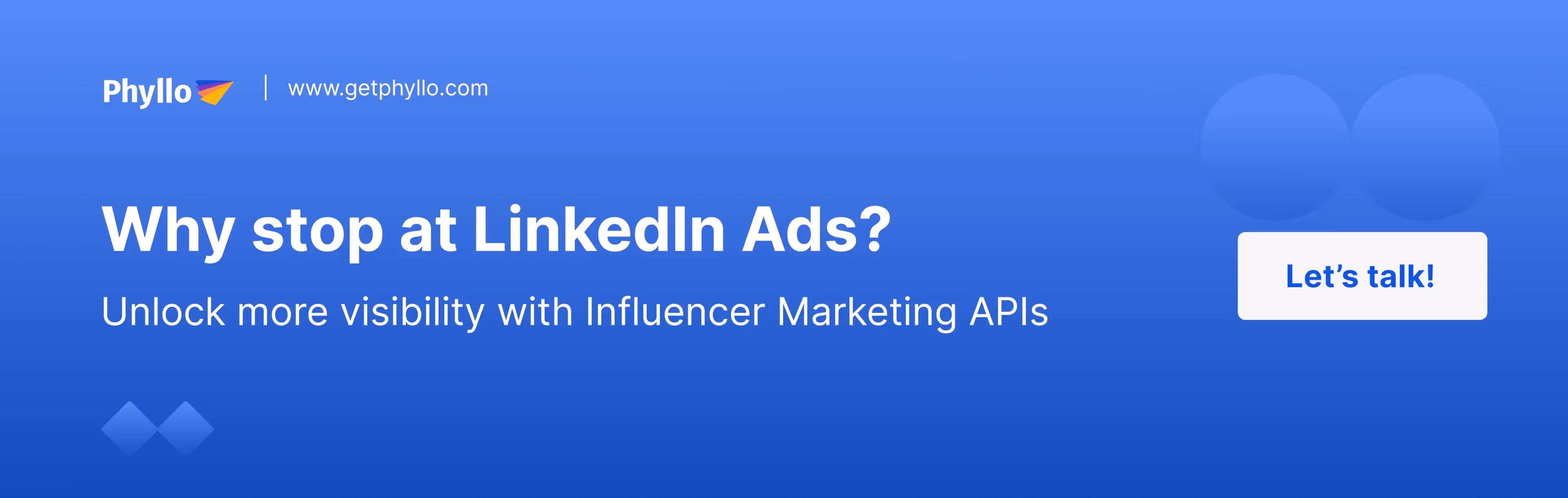 Leverage LinkedIn's native analytics along with third-party tools to gain comprehensive insights into your campaign performance. Phyllo's engagement analytics can provide detailed information on audience interaction and campaign effectiveness.