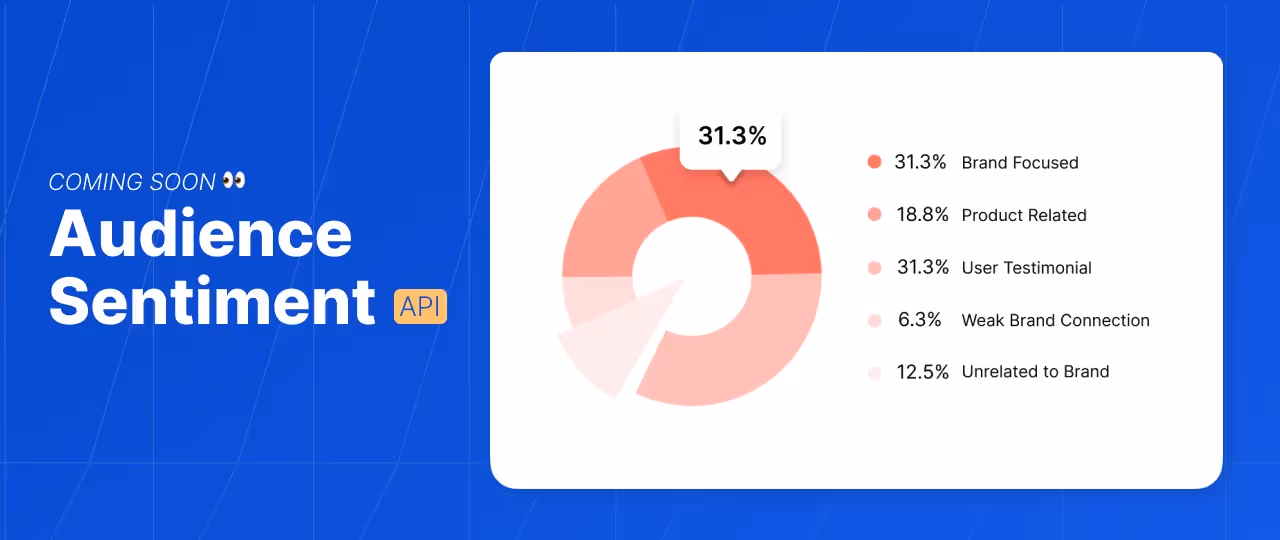 Introducing the Audience Sentiment API, that lets you gain insight into influencer engagement like never before! You can use it to analyze comments on an influencer’s posts and get a sense of the quality of engagement they’re able to drive. We go beyond traditional sentiment analysis and classify the comments based on relevance and meaningfulness. Learn more about the Audience Sentiment API here.