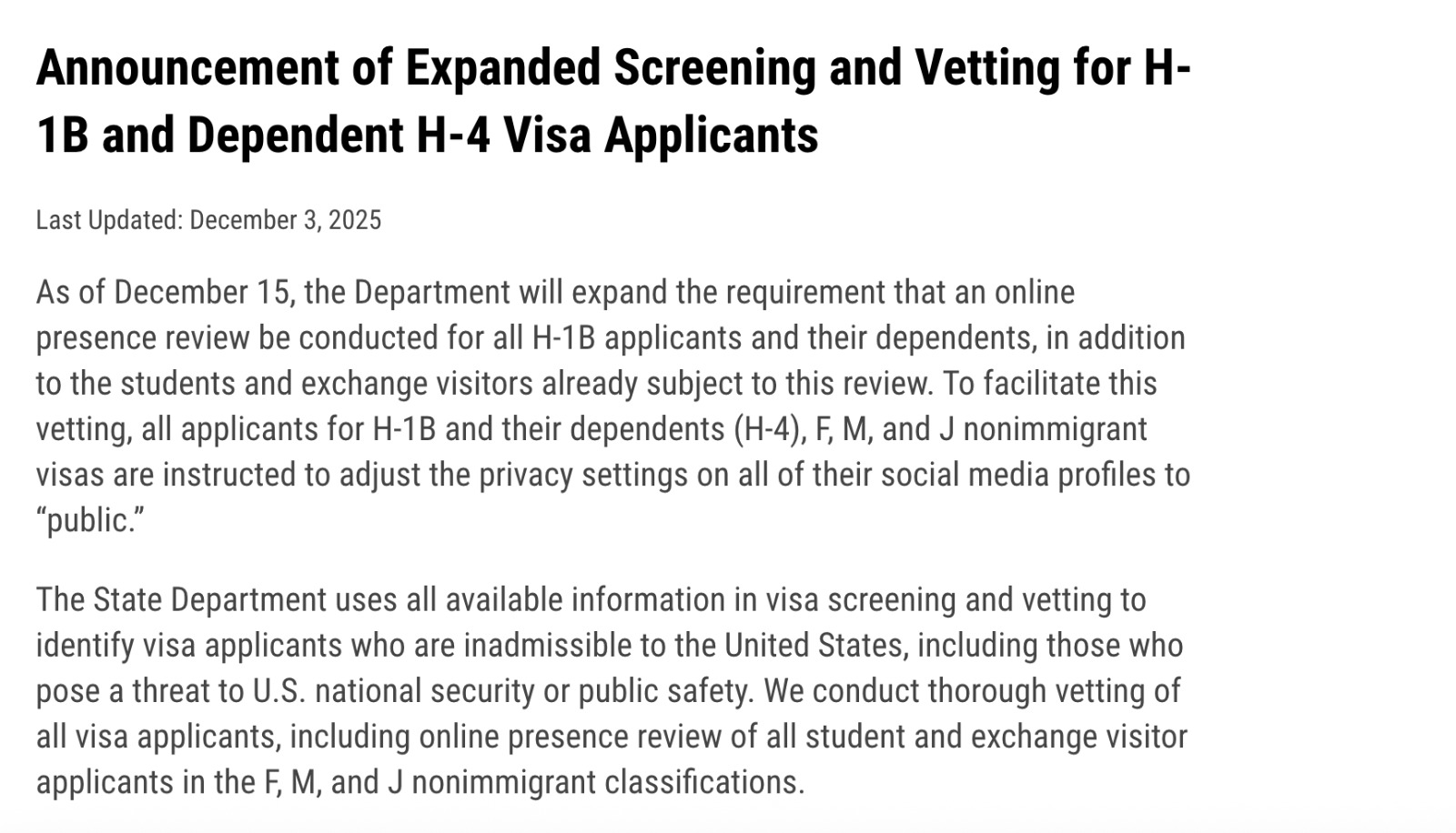The State Department of the United States has recently announced the mandatory social media screening of every H-1B workers and their H-4 family members/dependents from December 15 2025. The recent announcement is the result of the tightened visa-vetting system of the United States. Accordingly, every applicant needs to switch their existing Facebook, LinkedIn, and other social-media accounts’ settings to public to activate the scrutinizing process.